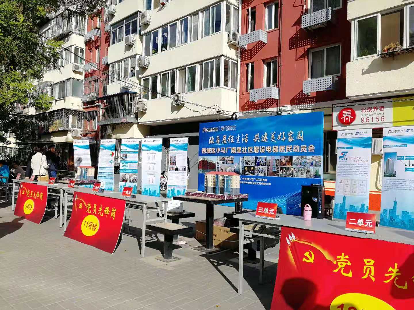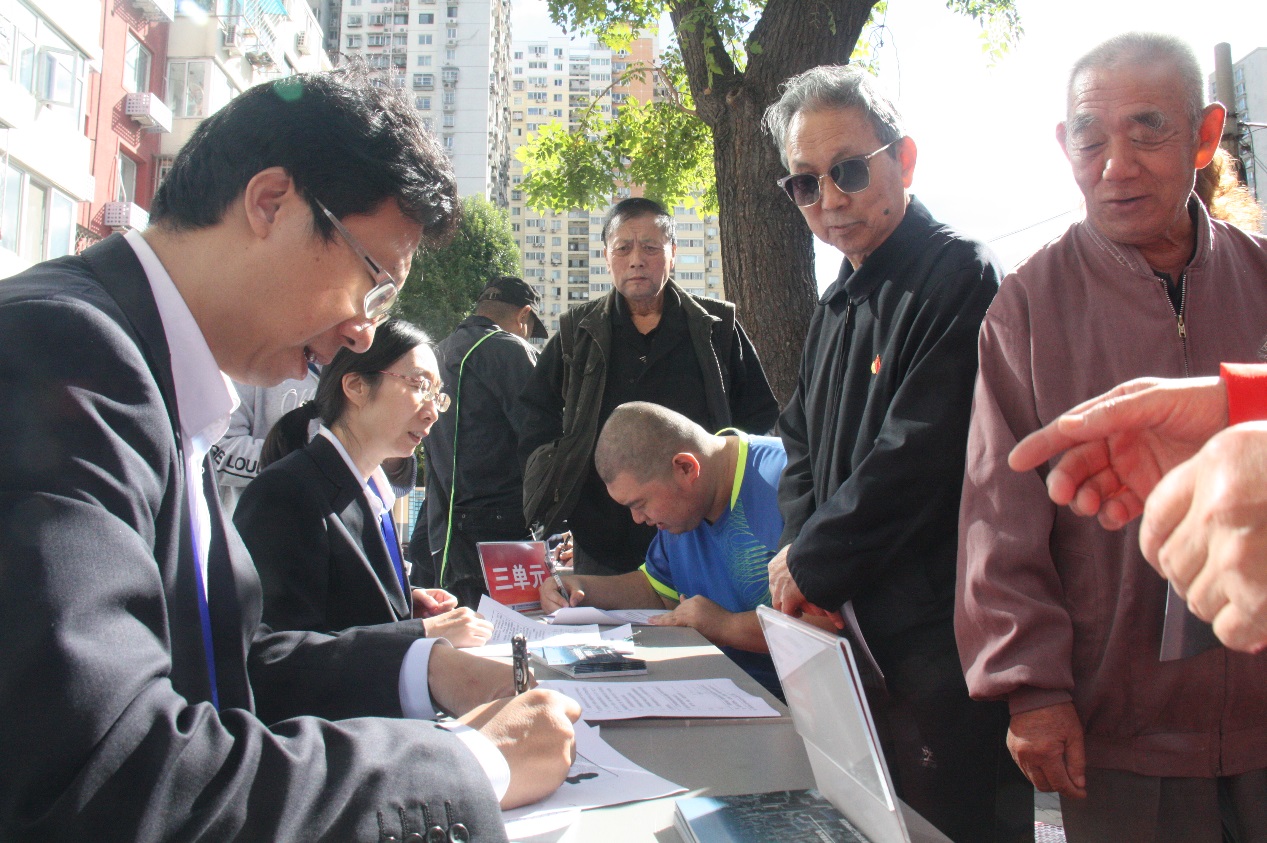 经过前期筹备,2018年9月30日,公司市场经营部牵头,机关全体党员和入党积极分子和社区党委党员、楼门长组成工作组在西城区小马厂南里小区开展为期一天的老楼增设电梯宣讲及居民签字工作。
