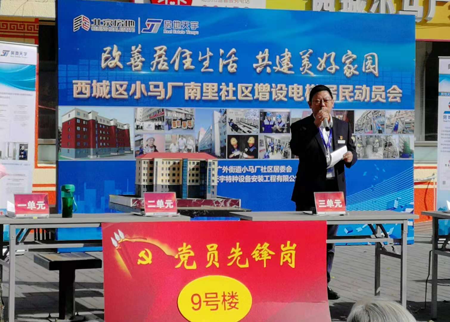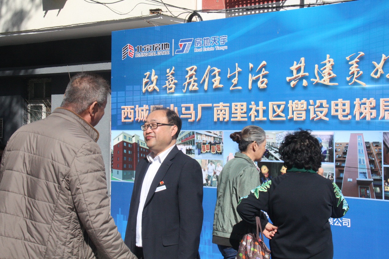 2018年8月,北京首钢特钢公司小马厂南里小区按市属国企非经营性资产移交给北京房地集团。房地天宇公司了解该小区居民增梯意愿强烈,立即进行实地调研增梯事宜,随后与西城区重大办、广外街道汇报了拟在该小区开展老楼增梯工作。公司党支部与小马厂社区党委取得联系,共谋将居民需求与党组织党员活动对接,为不断提升居民幸福感、获得感,承担起小区老楼加装电梯前期居民工作。