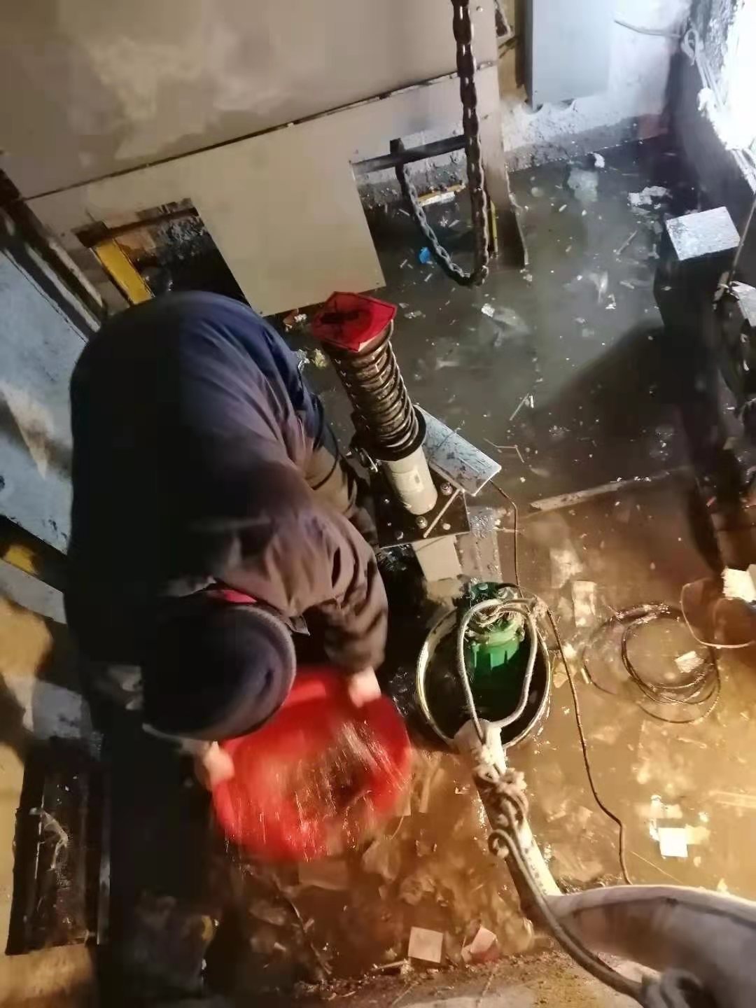 当天下午,首开天宇公司监控中心连续接到石景山三栋楼的报修电话,电梯管理部石景山西区二班组迅速启动应急响应,区域经理、维修人员第一时间赶到现场进行处理。经勘察,因近期极端寒冷天气导致消防栓破裂消防管线漏水,水流沿着楼道漫延至电梯井道,自上而下来势凶猛,电梯轿厢变成了“水帘洞”,底坑瞬间灌水达20公分,随时给居民出行及电梯设备等带来危险,情况十分紧急。周末正是电梯使用高峰期,电梯停运居民们也万分焦急。