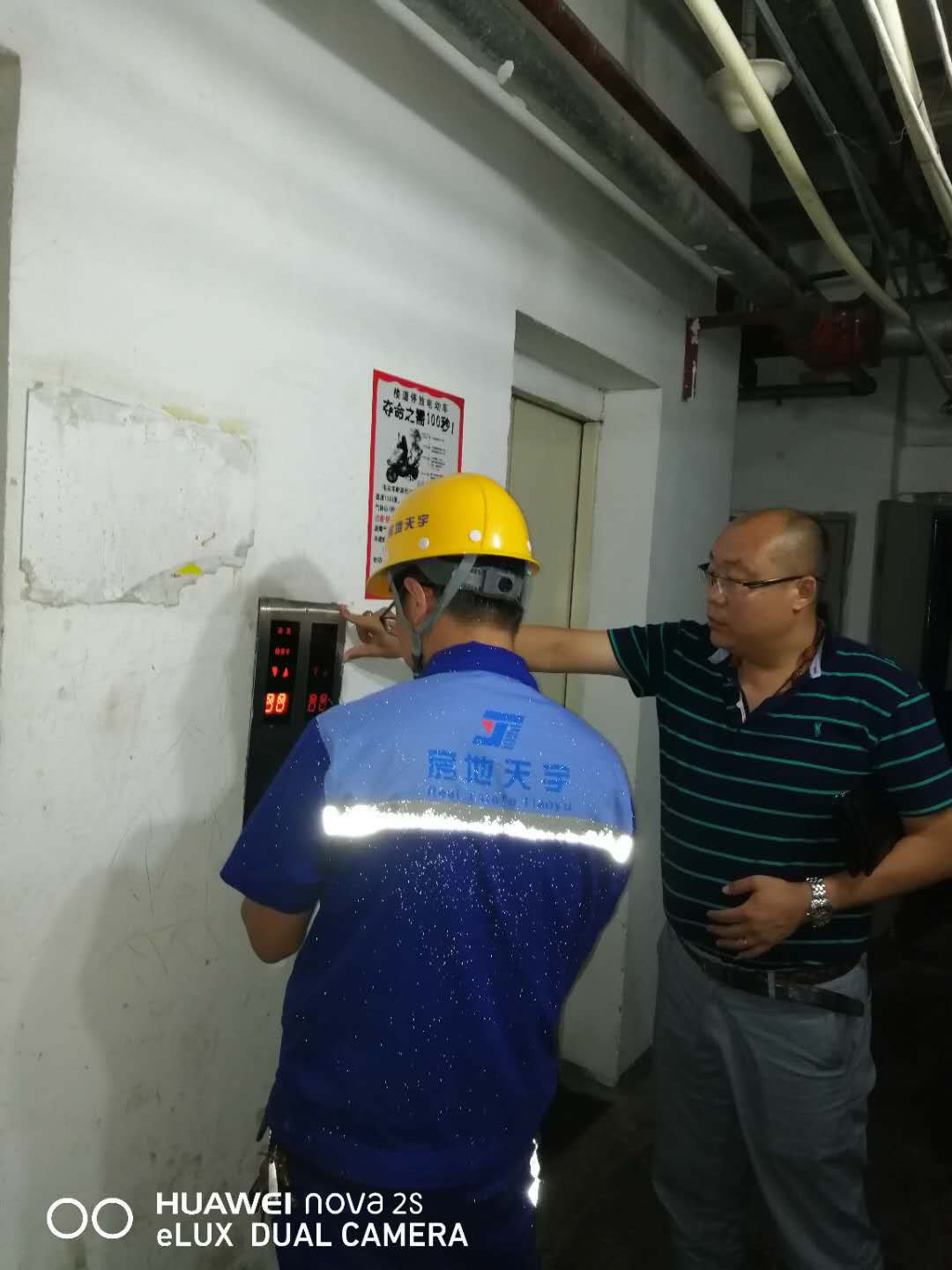 此次强降雨严重波及到公司维护保养的电梯,17日一早,电梯管理部管理人员全体出动,分组赶往公司所管电梯项目进行检查和受灾统计,要在最快时间内安排人员进行抢救式恢复工作,其中国美第一城项目有2台电梯因进水停梯。国美班组职工第一时间赶赴现场,与天岳恒物业公司服务人员一起,积极采取措施对受灾电梯进行恢复工作,并对其余电梯依次进行排查,尽可能减少影响,他们为保证电梯服务质量及电梯安全运行挥洒着辛勤的汗水,受到物业服务单位和广大住户的好评。