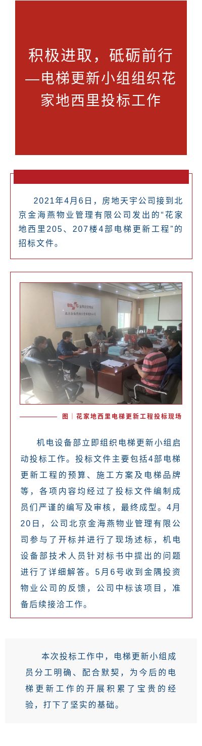 积极进取,砥砺前行 ——电梯更新小组组织花家地西里投标工作