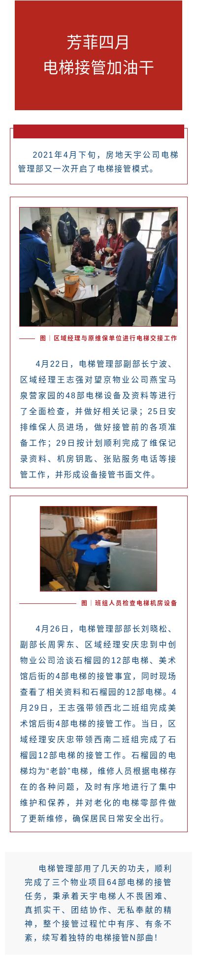 芳菲四月,电梯接管加油干!