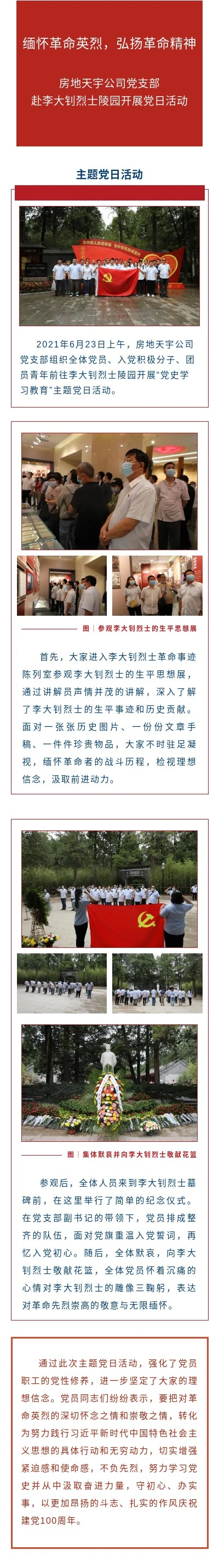缅怀英烈,弘扬革命精神 房地天宇公司党支部赴李大钊烈士陵园开展党日活动