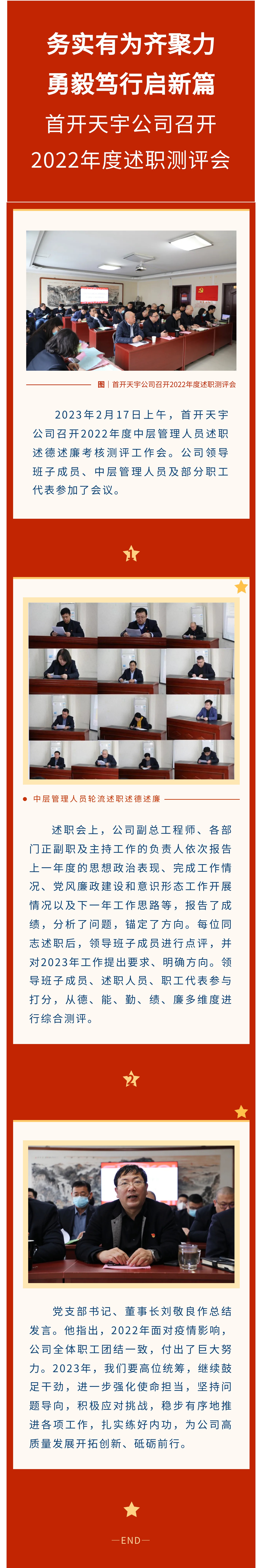 务实有为齐聚力 勇毅笃行启新篇 首开天宇公司召开2022年度述职测评会