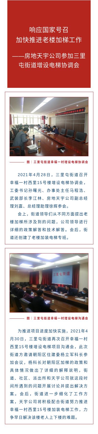 响应国家号召 加快推进老楼加梯工作 ——房地天宇公司参加三里屯街道增设电梯协调会