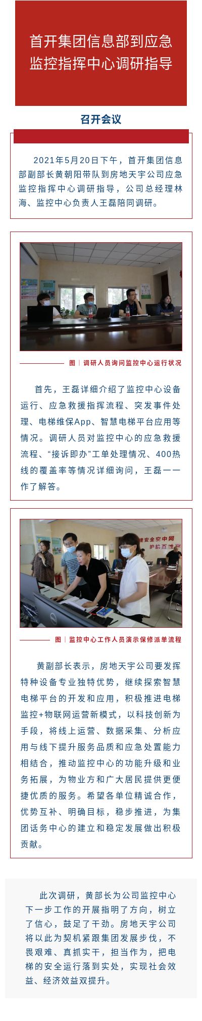 首开集团信息部到应急监控指挥中心调研指导