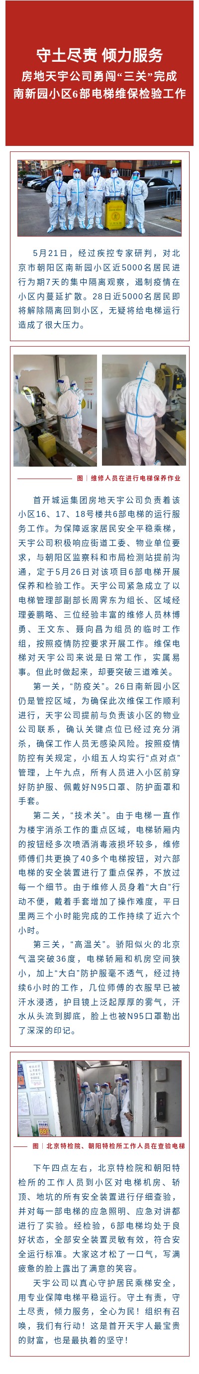 守土尽责 倾力服务 ——房地天宇公司勇闯“三关”完成南新园小区6部电梯维保检验工作