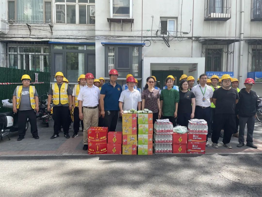 2023年7月13日下午,城运集团党委副书记、纪委书记姜红梅到首开天宇公司老楼加梯杨庄项目,看望在酷暑中奋战的一线职工,送去关心慰问和防暑用品。