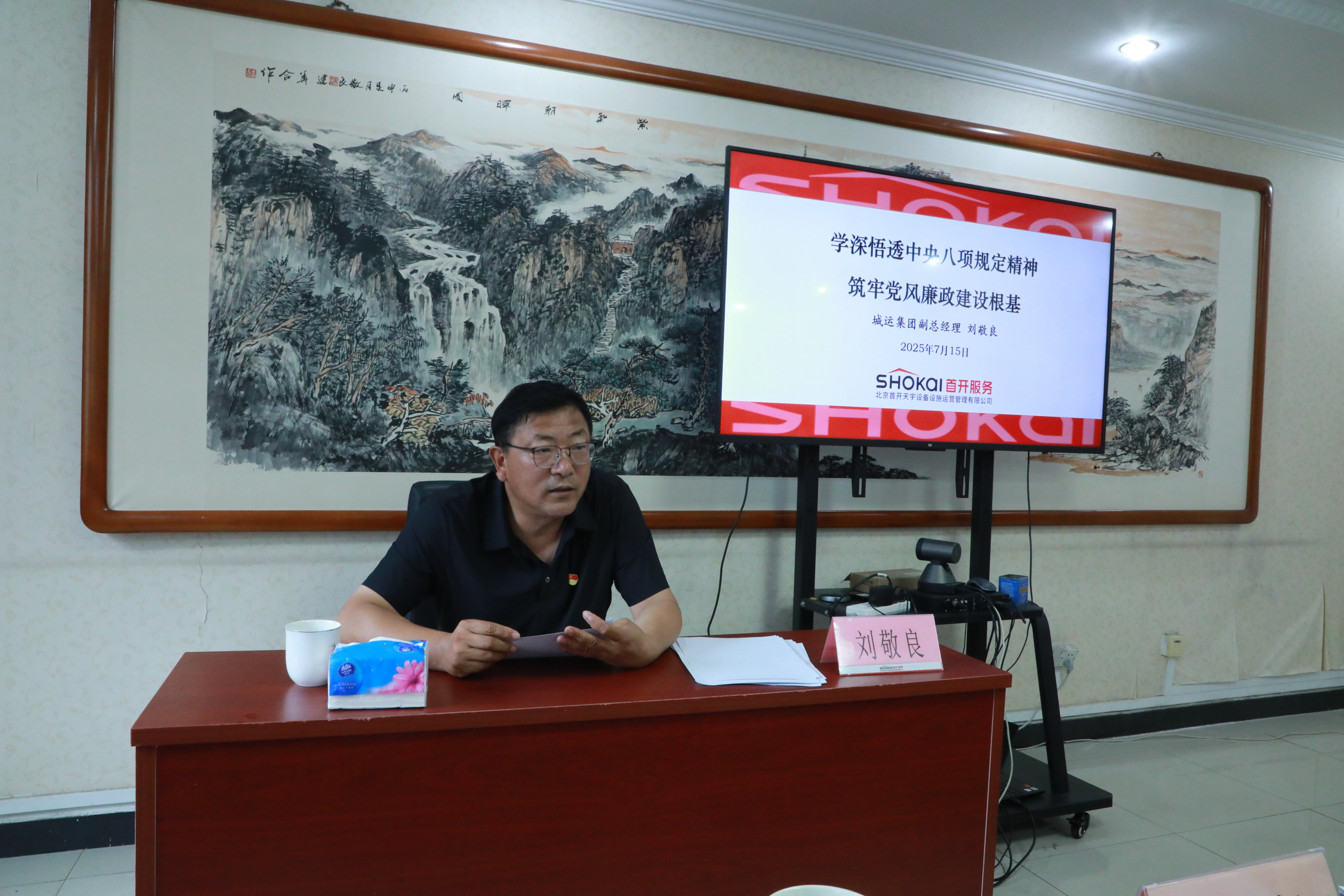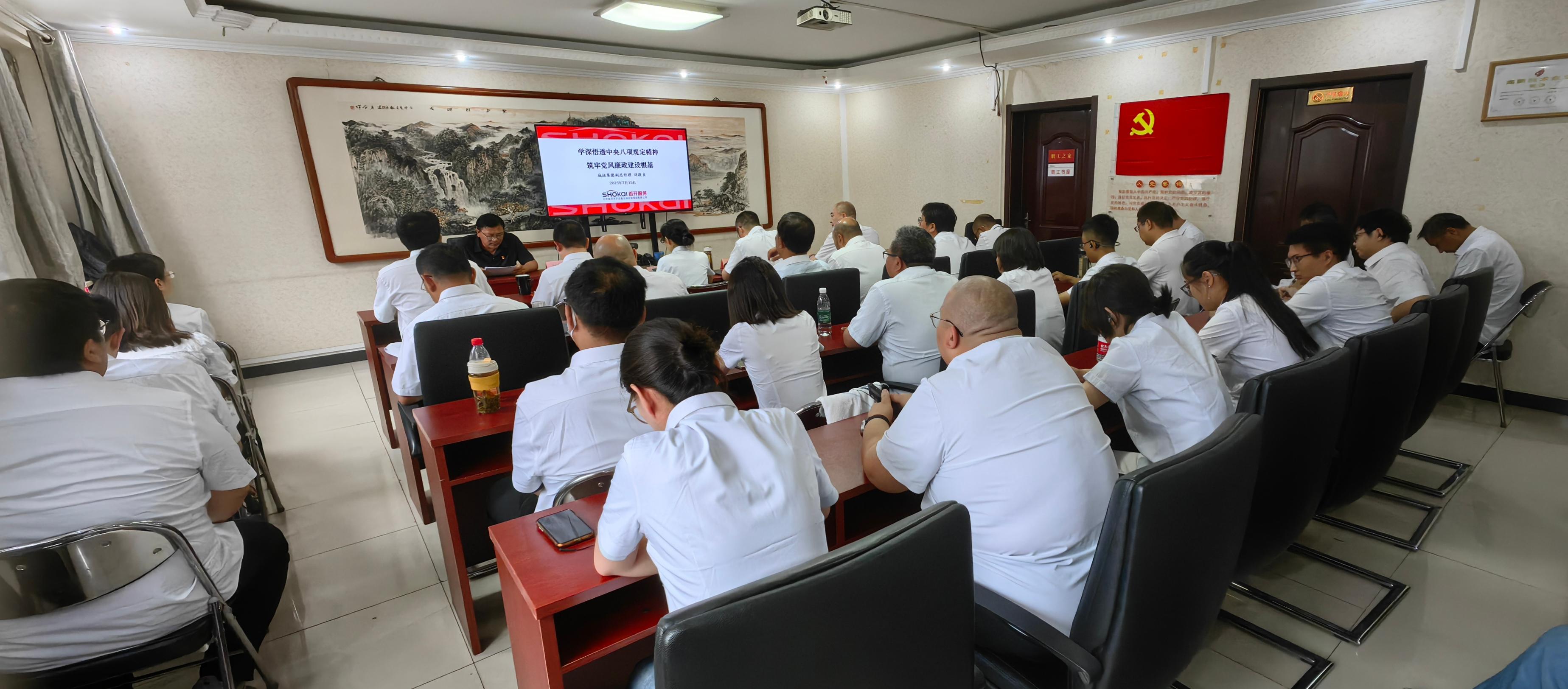 2025年7月15日下午,城运集团副总经理刘敬良为首开天宇公司党支部党员讲授深入贯彻中央八项规定精神学习教育专题党课。